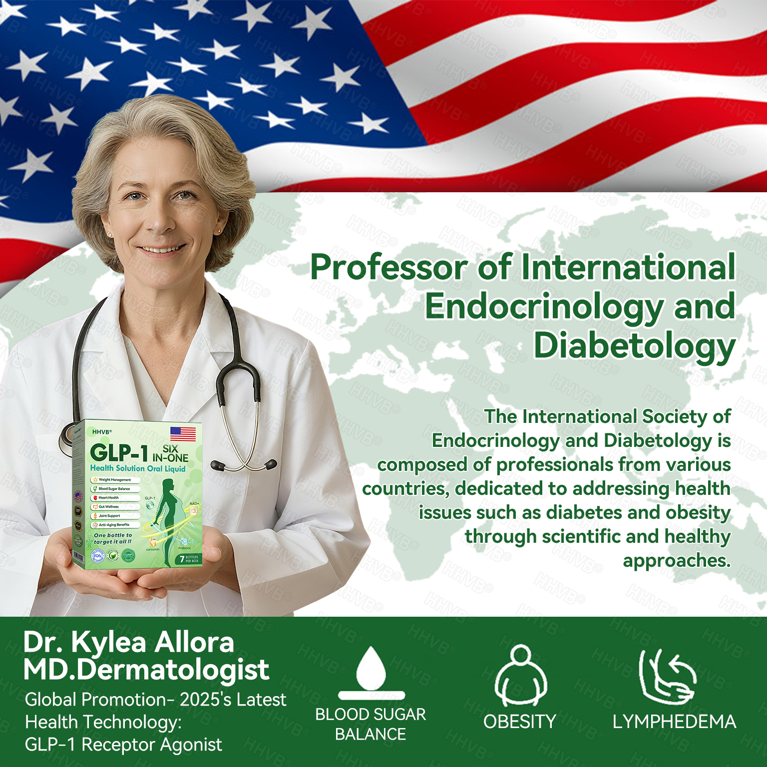 "As an endocrinologist, I am committed to finding effective and natural solutions for metabolic health and weight management. After extensive research and clinical trials with over 5,000 participants, I have found that HHVBยฎ GLP-1 Six-in-One Health Oral Solutionย offers remarkable benefits for metabolism, appetite control, and overall well-being. This formula naturally supports GLP-1 activation, helping regulate blood sugar levels, curb cravings, and enhance fat burning. Its powerful blend of apple cider vinegar, turmeric, and other natural ingredients not only aids in healthy weight loss but also promotes digestive health, boosts immunity, and supports long-term metabolic balance. With the backing of modern medical research, HHVBยฎ GLP-1 Six-in-One Health Oral Solutionย is a trusted, science-driven choice for those seeking a natural and effective approach to weight management and overall health."