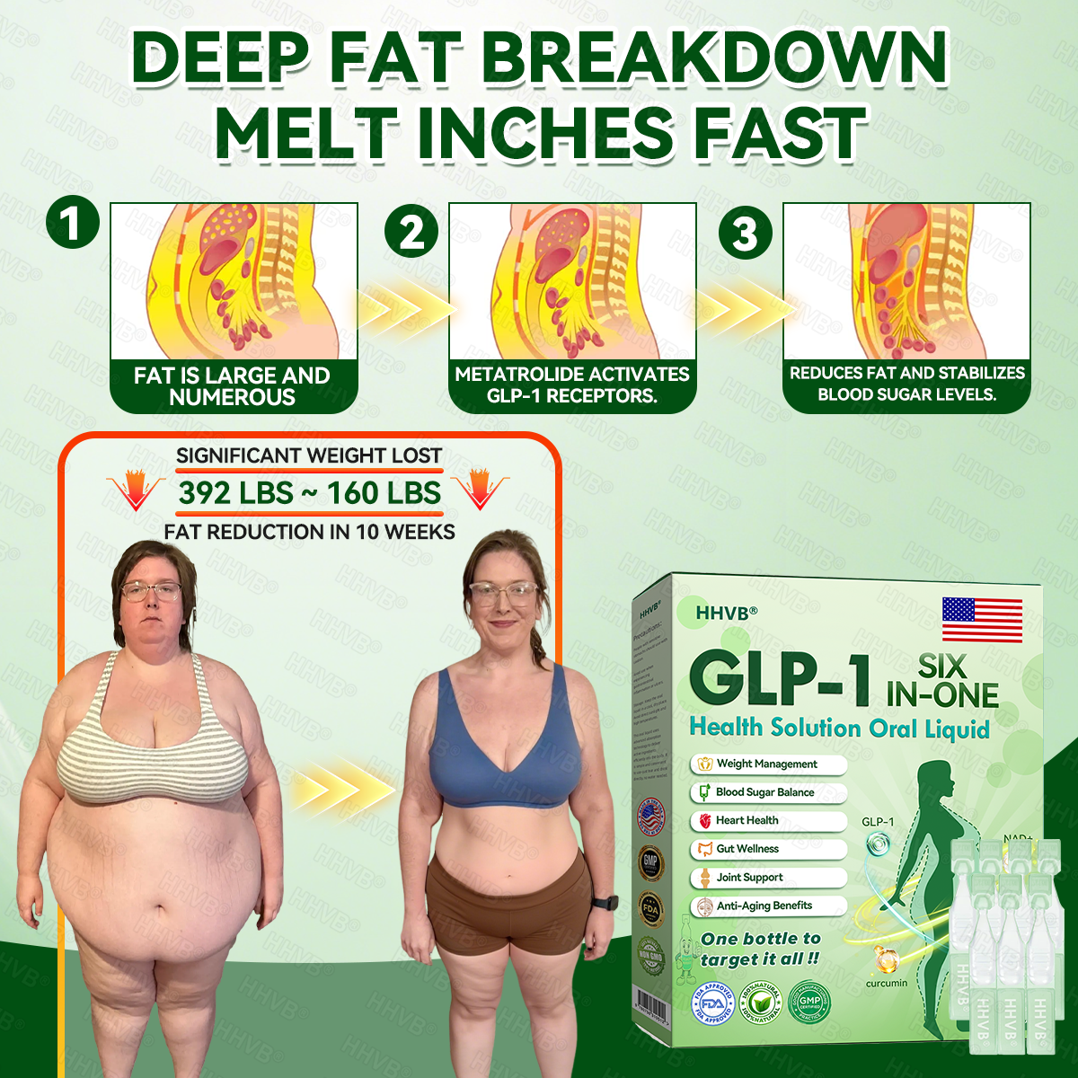 In clinical studies, users of HHVBยฎ GLP-1 Six-in-One Health Oral Solutionย achieved impressive results, with some losing as much asย 6โ8 lbs of stubborn fat in just one week.With justย one dose every day, it effectively targets the burning ofย visceral and abdominal fat, helping to sculpt a leaner body โย no intense workouts required.