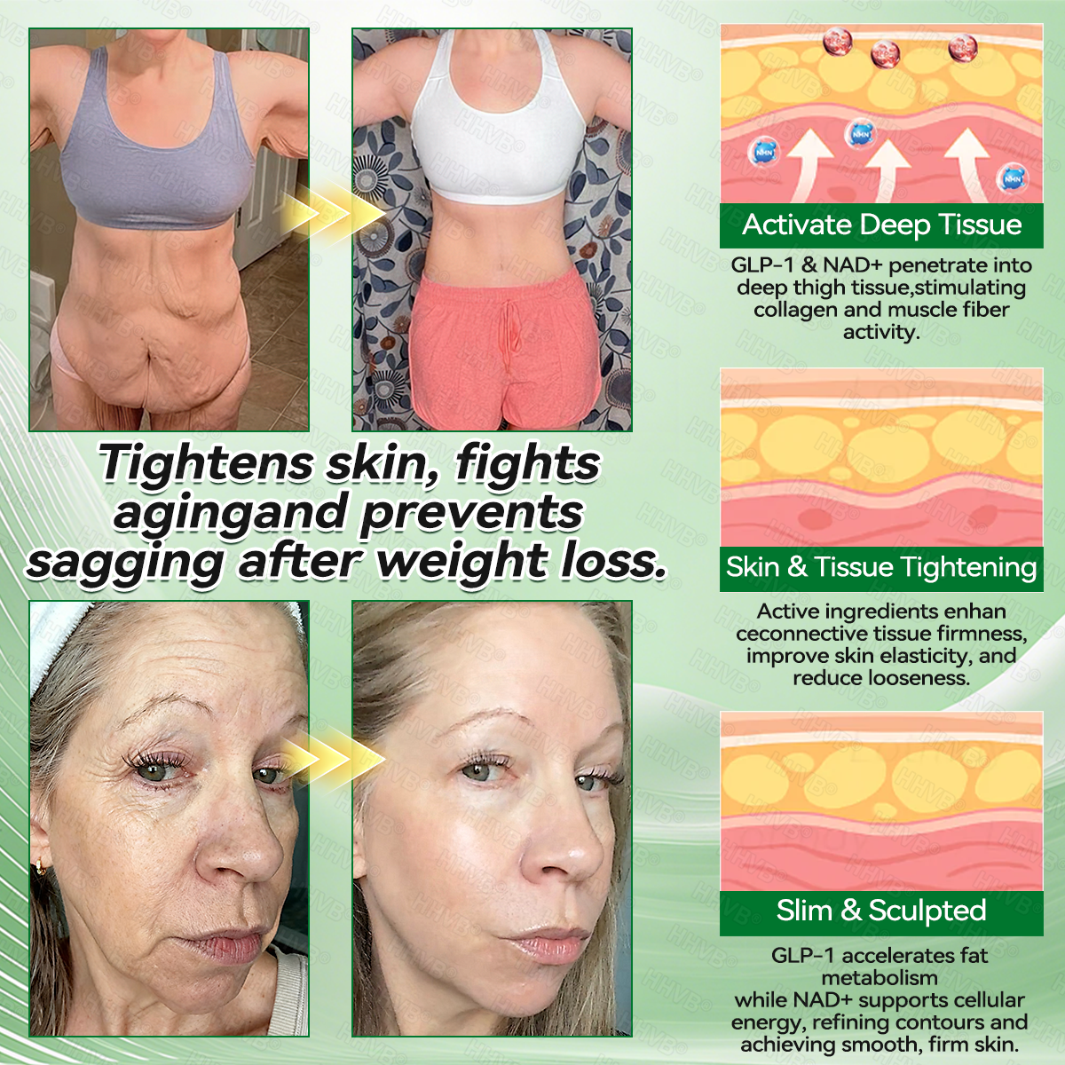 NADโบ effectively stimulates collagen synthesis and activates cellular repair, specifically targeting skin laxity caused by fat loss after weight reduction. It helps rebuild the dermal support structure, restoring firmness and elasticity.Collagen peptides work synergistically to accelerate fibroblast regeneration, fill in depressions, and smooth sagging areasโenhancing facial contours for a more lifted and youthful appearance.Combined with advanced moisturizing agents that deeply lock in hydration, this formula keeps post-weight-loss skin plump, resilient, and radiant, naturally redefining a youthful facial structure.