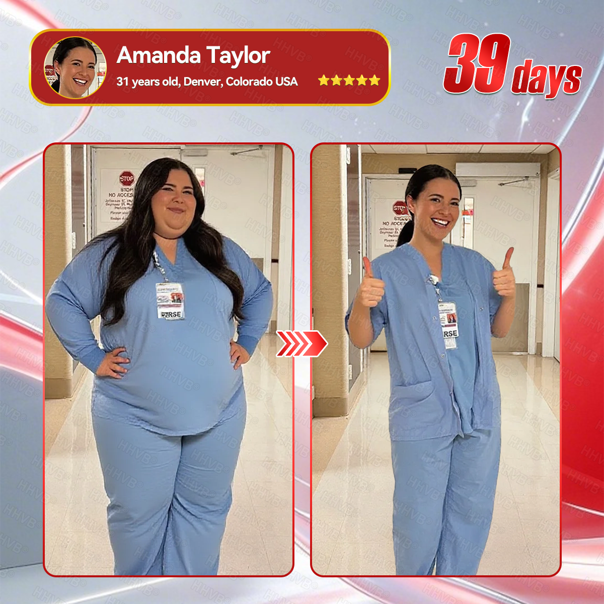 โAs a nurse, I work long shifts on my feet with back-to-back patients and barely any time for myself. I used to grab snacks from vending machines, live on coffee, and skip real meals. The weight came fast, my legs ached after every shift, and even a few stairs left me breathless. Then I found HHVBยฎ GLP-1 + Collagen Peptides Weight Loss & Firming Oral Solutionโjust one sachet mixed with water, thatโs it. In the first week, I stopped craving fries and candy during night shifts. By the second week, my sleep improved and I had more energy for my patients. After 30 days, I lost over 50 pounds. Itโs easy to carry, simple to use, and now my coworkers keep asking for my secret.โโ Amanda Taylor, Denver,Colorado