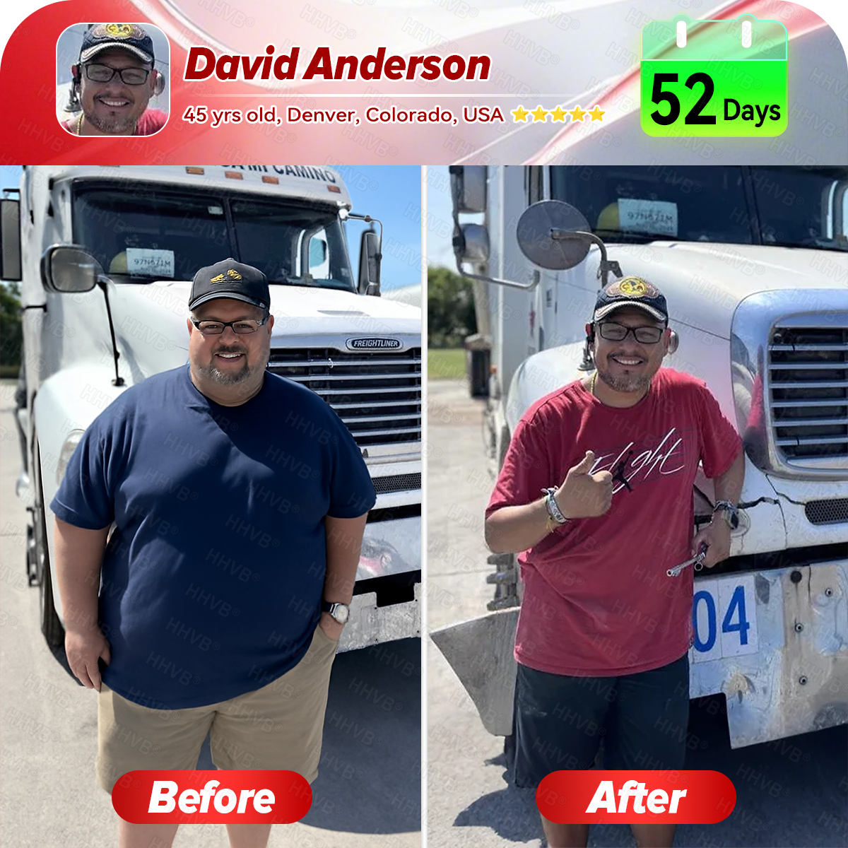 "Iโve been a truck driver for over twenty years, and to be honest, this job nearly destroyed my health. Sitting behind the wheel for more than ten hours a day, living on gas-station burgers and sugary energy drinksโit all caught up to me. At my heaviest, I was almost 280 lbs. My knees ached every day, and even climbing into my truck left me breathless.Then an old friend told me about HHVBยฎ GLP-1 + Collagen Peptides Weight-Loss & Firming Oral Solution. I wasnโt expecting muchโafter all, Iโd tried every method out there: dieting, fasting, workoutsโฆ nothing worked. But this time was different. Every morning before starting my route, I just took one sachet.By the first week, I noticed I no longer craved junk food. By the second week, my energy came backโI could drive for long hours without feeling exhausted. After almost two months, Iโd lost more than 60 lbs, my skin looked tighter, not saggy like before, and even my wife said I looked ten years younger.HHVBยฎ didnโt just help me lose weightโit gave me back my health, my confidence, and the joy of living.